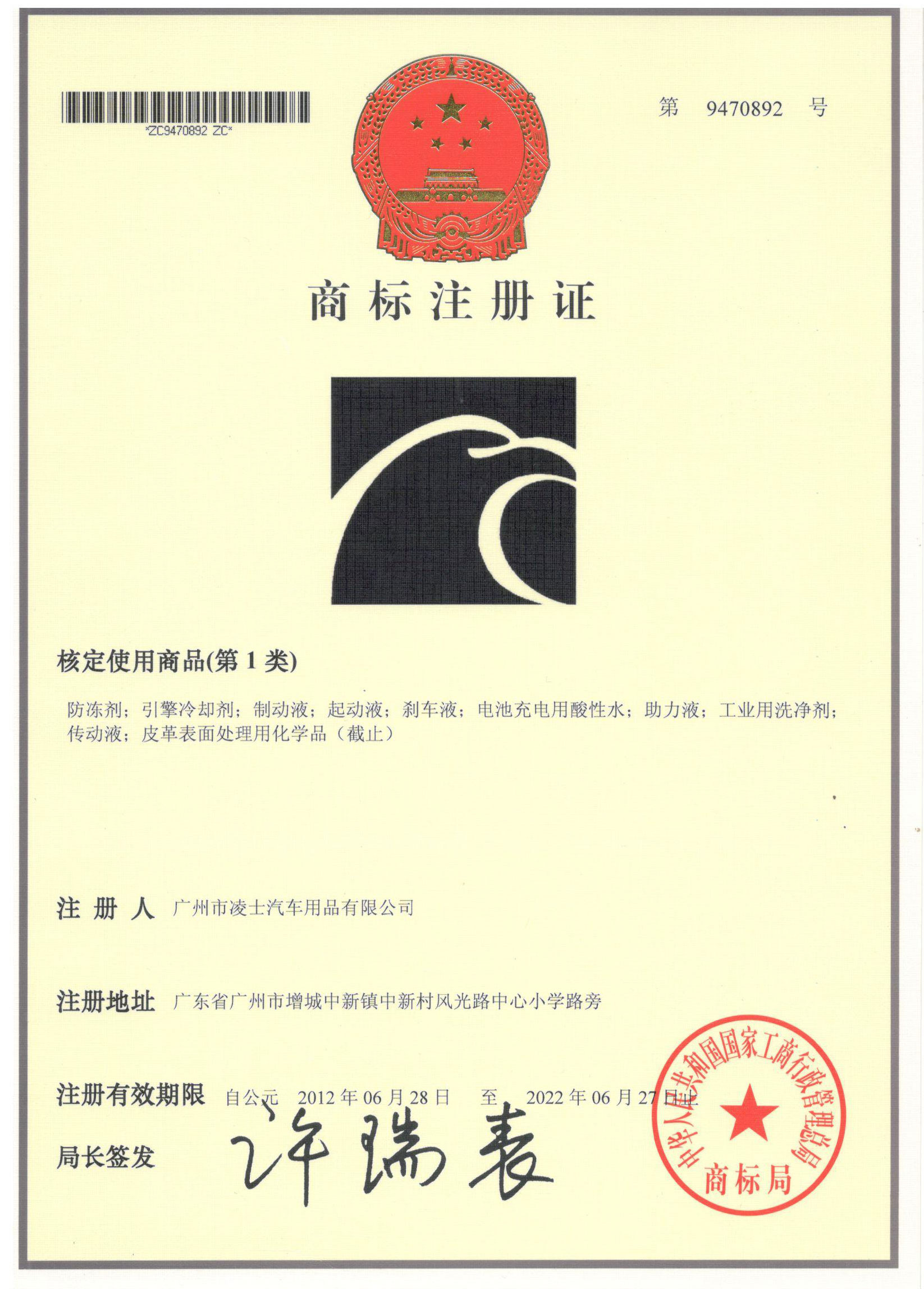 鷹力商標(biāo)注冊(cè)證